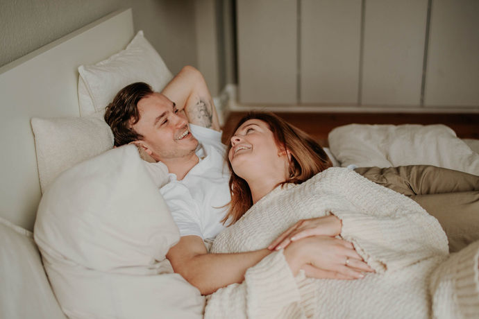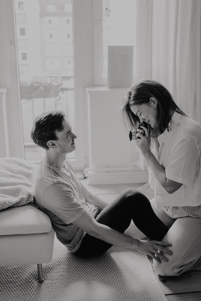 Für diese Homestory durfte ich zwei Menschen in ihrem ganz eigenen Rhythmus begleiten. Zwischen leisen Gesprächen, gemeinsamen Lachen, Nähe auf dem Sofa und kleinen Berührungen entstand Raum für echte Augenblicke. Ohne Ablenkung, ohne Druck, nur Zeit füreinander, Ruhe und das Gefühl von Ankommen. Eine Geschichte, die zeigt, dass die schönsten Momente oft genau dort entstehen, wo man sich am wohlsten fühlt.