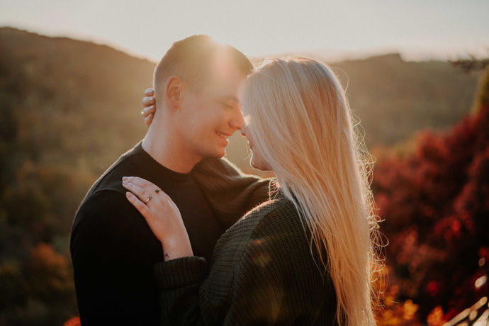 Zwischen leuchtend roten Blättern und dem warmen Licht des Sonnenuntergangs durfte ich ganz besondere Momente festhalten. Die Sonne tauchte die Umgebung in goldene Farben, während es um die beiden herum langsam ruhiger wurde. Inmitten dieser herbstlichen Stimmung entstanden ehrliche, vertraute Augenblicke, voller Nähe, Wärme und Leichtigkeit. Als wir auf dem Rückweg noch an der Papiermühle in Jena ankamen gingen gerade die Lichter an und so entstanden ganz spontan noch ein paar innige Bilder im Laternenlicht.